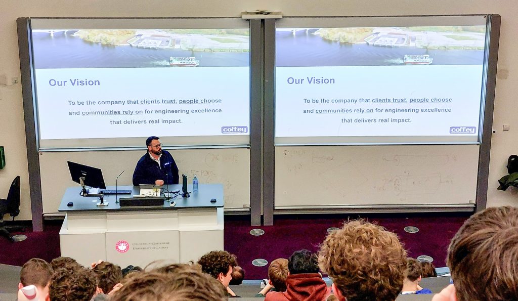 At Coffey, supporting the next generation of engineers is a core part of how we contribute to the future of the industry. One of the ways we do this is by sponsoring the annual Pasta Bridge competition at the University of Galway – a hands-on challenge designed for first-year engineering students.